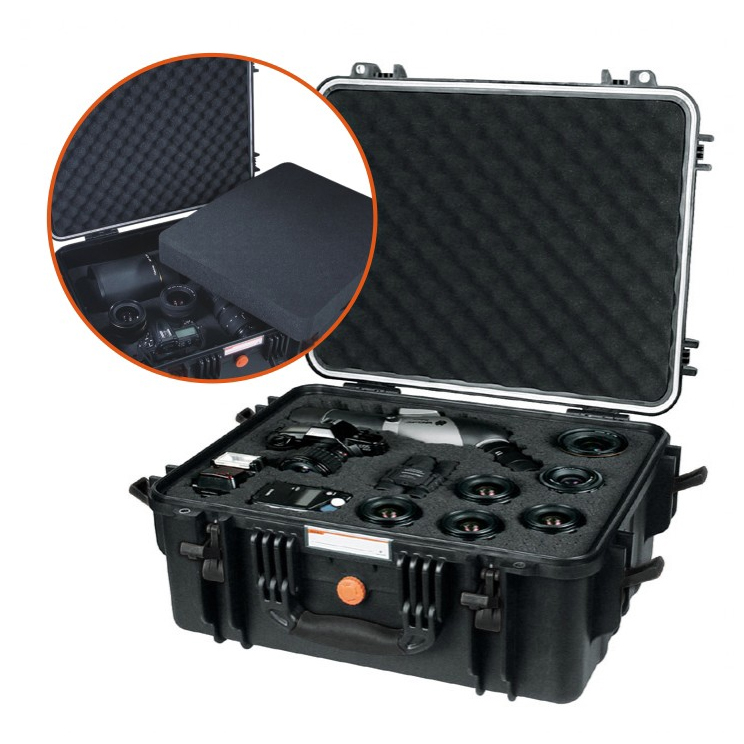 Prácticamente indestructible, los maletines resistentes de la serie Supreme de VANGUARD tienen características innovadoras de fuerza y durabilidad inigualables. Sellado de junta tórica, resistente al agua (hasta una profundidad de 5 metros), hermético y construido para soportar las condiciones más extremas (-40 ° C a 95 °C). Los maletines Supreme son ideales para viajes aéreos, con una válvula de compensación automática y capacidad para soportar hasta 120 kg de peso exterior. Pies de goma antideslizante y una sólida asa ofrecen una mayor durabilidad. Gruesos, pestillos de bloqueo de liberación rápida y pestillos de bloqueo reforzados con acero que son ideales para su uso con candados para mayor seguridad. Supreme 46F tiene espuma densa, personalizable en forma hexagonal para extensas medidas, ajuste personalizado para los equipos.
