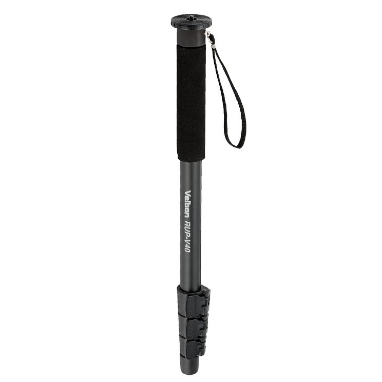 VELBON es una empresa líder en el diseño y desarrollo de trípodes y monopies. Con 4-secciones en su pata de aleación de aluminio con un sistema de bloqueo de la pierna y tirante radial Velbon RUP-V40 vaina puede alcanzar una altura máxima de 152 cm y se pliega a 61 cm.Tiene la capacidad de establecer una estrecha a la fotografía mediante el ajuste de suelo a una altura mínima de 55,5 cm.