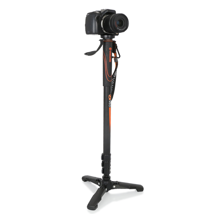 The VEO AM-264TR monopod is one of the most compact of its kind, and yet still performs excellently at full extended height. It can be used for video or photo support and can also double as a walking stick. The 4-section aluminum alloy legs come equipped with strong flip locks, maximizing the monopod's camera loading capacity. Quickly stabilize your shot with the innovative tri-stand. The built-in ball joint feature allows smooth pan and tilt photo/video options. The legs fold easily and lock in seconds. The soft rubber handle will provide an unbeatable grip in any weather. You may then pack your VEO monopod away to fit easily in your carry-on to make it to your next adventure.